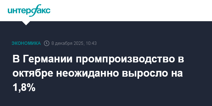 В Германии промпроизводство в октябре неожиданно выросло на 1,8%