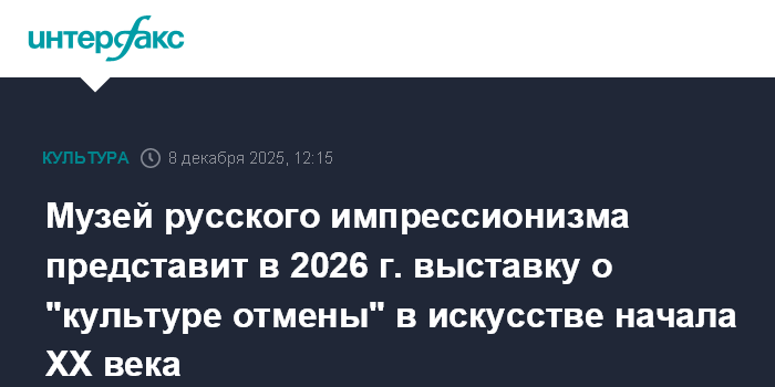 Москва. 8 декабря. INTERFAX.RU - Выставки о феномене карнавалов и маскарадов, о "лаборатории модернизма" и об искусстве начала XX века, столкнувшимся с "культурой отмены" представят в 2026 году в Музее русского импрессионизма, сообщили в пресс-службе музея.