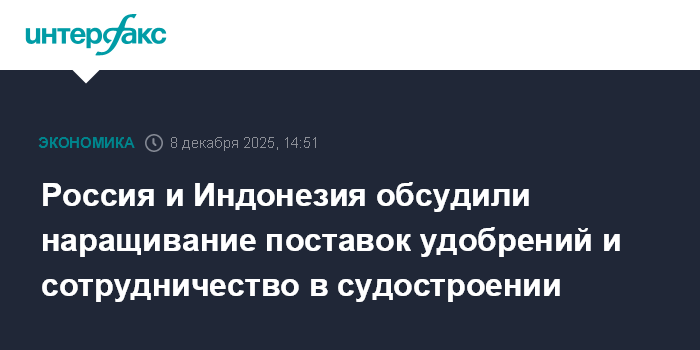 Россия и Индонезия обсудили наращивание поставок удобрений и сотрудничество в судостроении