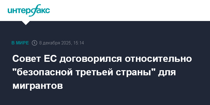 Москва. 8 декабря. INTERFAX.RU - Совет ЕС согласовал свою переговорную позицию по двум законодательным актам Евросоюза, которые призваны "укрепить практическое применение ключевых концепций безопасных стран в правилах ЕС о предоставлении убежища".