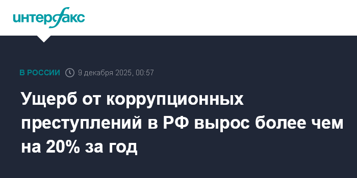 Согласно данным Бастрыкина, всего за 9 месяцев 2025 года следственные подразделения СКР "возбудили более 24 тыс. уголовных дел по коррупционным статьям, на 16% больше, чем в прошлом году".