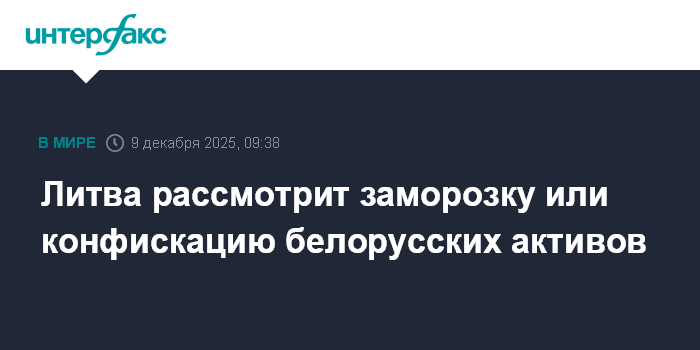 Москва. 9 декабря. INTERFAX.RU - Государственный совет обороны Литвы (VGT) в середине декабря обсудит, какие активы Белоруссии, находящиеся в Литве, могут быть заморожены или конфискованы, сообщил LRT президент Гитанас Науседа.