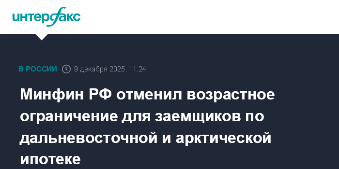 Минфин РФ отменил возрастное ограничение для заемщиков по дальневосточной и арктической ипотеке