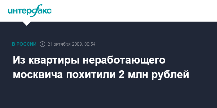 Из квартиры неработающего москвича похитили 2 млн рублей