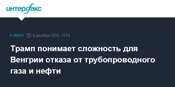 Трамп понимает сложность для Венгрии отказа от трубопроводного газа и нефти