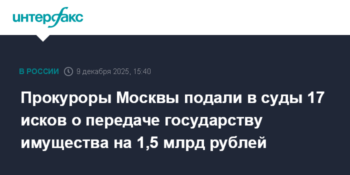 Прокуроры Москвы подали в суды 17 исков о передаче государству имущества на 1,5 млрд рублей