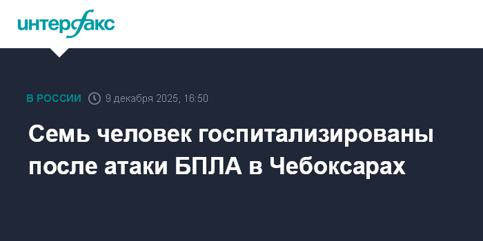 Москва. 9 декабря. INTERFAX.RU - Министр здравоохранения Чувашии Лариса Тарасова сообщила, что из 14 человек, пострадавших после утренней атаки БПЛА на Чебоксары, госпитализировано семеро.
