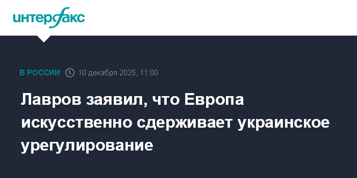 Москва. 10 декабря. INTERFAX.RU - Европа искусственно сдерживает процесс урегулирования украинского конфликта, пытаясь настраивать Киев на продолжение военных действий, заявил в Совете Федерации глава МИД Сергей Лавров.