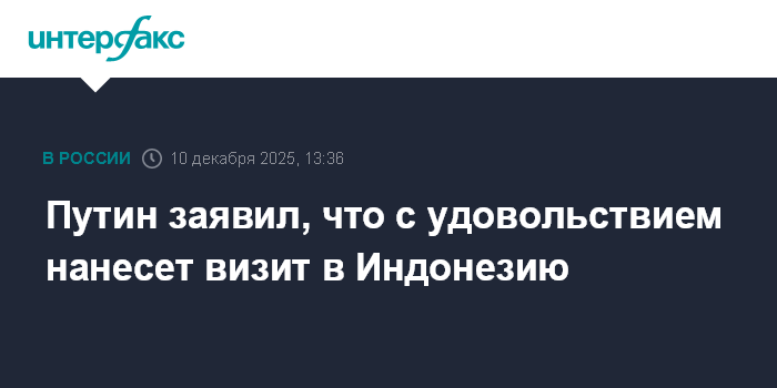 Москва. 10 декабря. INTERFAX.RU - Президент РФ Владимир Путин принял приглашение индонезийского коллеги Прабово Субианто посетить с визитом Индонезию в 2026-2027 годах, заявил, что приедет с удовольствием.