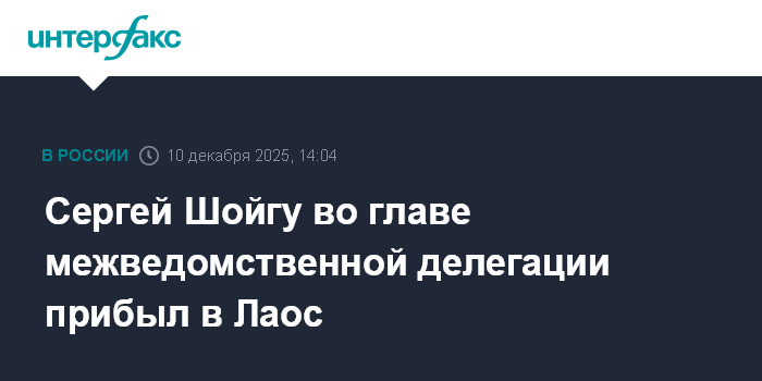Москва. 10 декабря. INTERFAX.RU - Секретарь Совета безопасности РФ Сергей Шойгу во главе межведомственной делегации прибыл в Лаос, где у него запланированы переговоры с высшим руководством страны и главами силовых ведомств, сообщили в пресс-службе аппарата Совбеза РФ в среду.