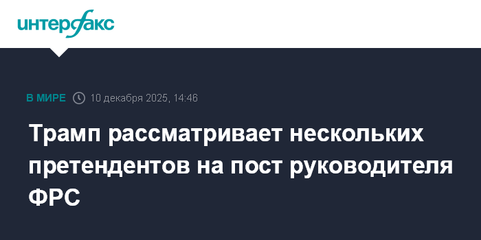 Трамп и Бессент планируют по крайней мере еще одну встречу с кандидатом на пост главы американского ЦБ на следующей неделе, отмечают источники. Финальное решение будет объявлено в начале января.