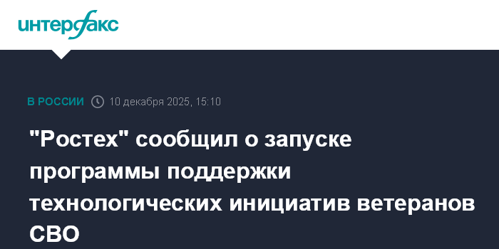 "Ростех" сообщил о запуске программы поддержки технологических инициатив ветеранов СВО