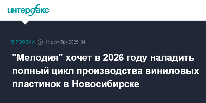 "Мелодия" хочет в 2026 году наладить полный цикл производства виниловых пластинок в Новосибирске