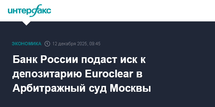 Москва. 12 декабря. INTERFAX.RU - ЦБ РФ собирается взыскать с бельгийского депозитария Euroclear причинённые российскому регулятору убытки, подаст соответствующий иск в Арбитражный суд Москвы, говорится в сообщении Банка России.