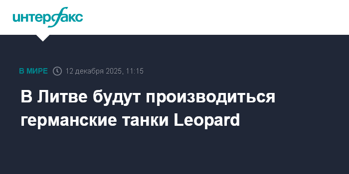 Москва. 12 декабря. INTERFAX.RU - Сборка германских танков Leopard 2 A8 будет организована в Литве, сообщила пресс-служба литовского Минобороны.