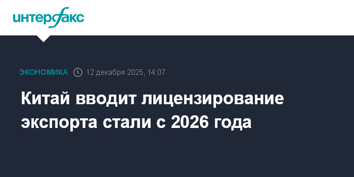 Как говорится в сообщении министерства торговли КНР, с 1 января 2026 года производителям потребуется получать разрешение на экспорт порядка 300 видов стальной продукции. В этот перечень попали, в частности, различные виды стальных заготовок, горячекатаный прокат и нержавеющая сталь.