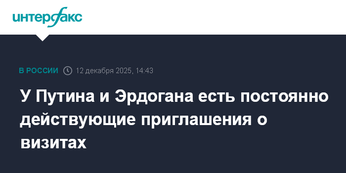 У Путина и Эрдогана есть постоянно действующие приглашения о визитах