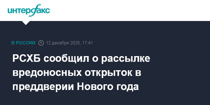 РСХБ сообщил о рассылке вредоносных открыток в преддверии Нового года