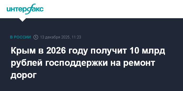 "Андрей Никитин сообщил, что в 2026 году объем государственной поддержки на приведение региональных дорог в Крыму в нормативное состояние составит 10 млрд рублей", - говорится в сообщении.