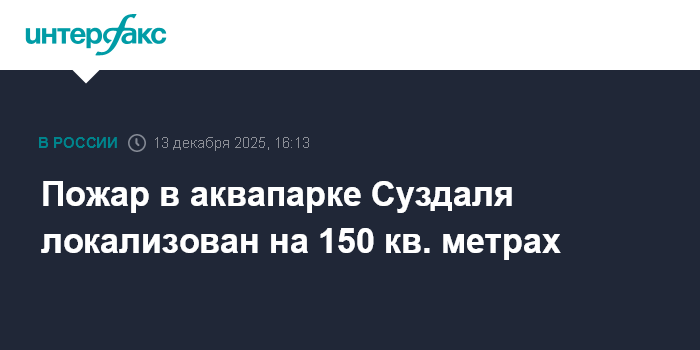 Москва. 13 декабря. INTERFAX.RU - Сотрудники МЧС локализовали пожар в аквапарке в Суздале на площади 150 кв. м, сообщила пресс-служба регионального ведомства в субботу.