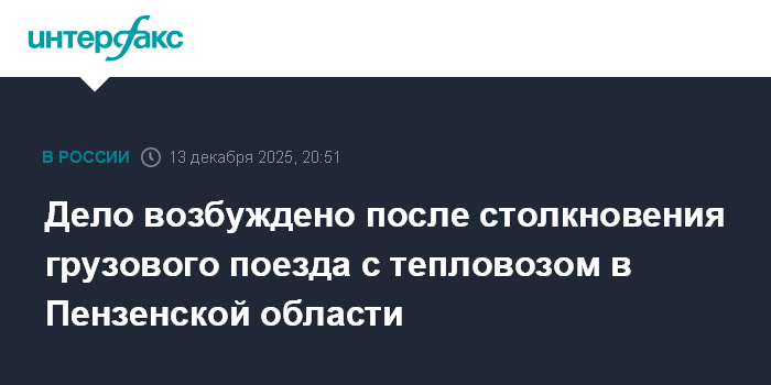 Дело возбуждено после столкновения грузового поезда с тепловозом в Пензенской области