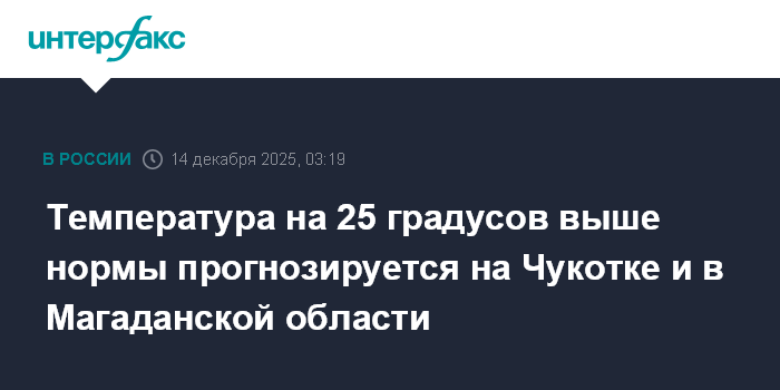 Температура на 25 градусов выше нормы прогнозируется на Чукотке и в Магаданской области
