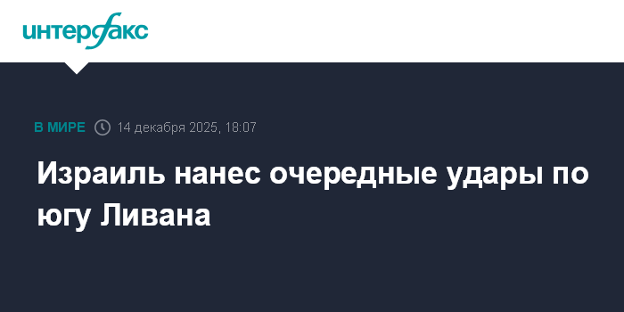 Москва. 14 декабря. INTERFAX.RU - Армия обороны Израиля нанесла в воскресенье новую серию ударов по предполагаемым позициям группировки "Хезболла" на юге Ливана, сообщают ближневосточные СМИ.