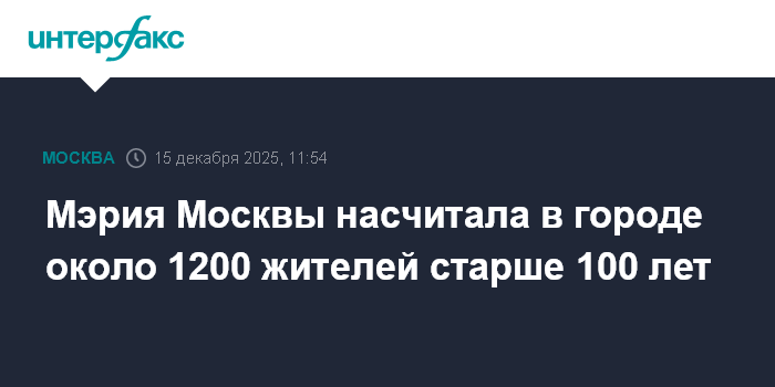 Мэрия Москвы насчитала в городе около 1200 жителей старше 100 лет
