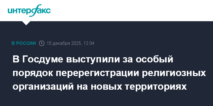 В Госдуме выступили за особый порядок перерегистрации религиозных организаций на новых территориях