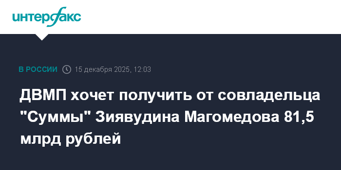 ДВМП хочет получить от совладельца "Суммы" Зиявудина Магомедова 81,5 млрд рублей