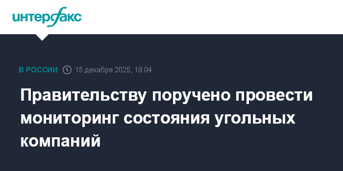 Москва. 15 декабря. INTERFAX.RU - Президент РФ Владимир Путин поручил правительству провести мониторинг финансового состояния компаний угольной отрасли. Об этом говорится в опубликованном в понедельник перечне поручений по итогам РЭН-2025.