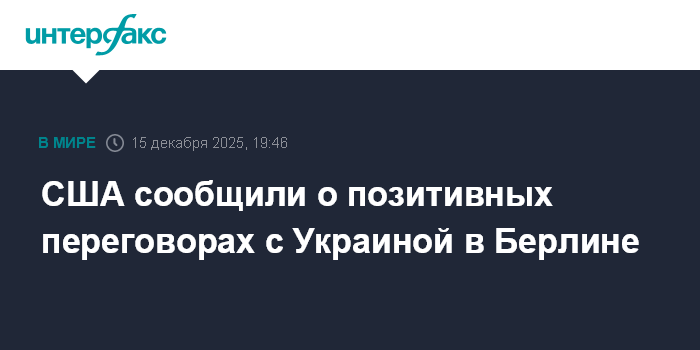 Москва. 15 декабря. INTERFAX.RU - Американская сторона положительно оценила прошедшие в Берлине переговоры с украинской делегацией, сообщает в понедельник Bloomberg со ссылкой на официальные лица США.