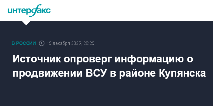 Москва. 15 декабря. INTERFAX.RU - Источник в российской Объединенной группировке войск в зоне СВО заявил, что сообщения о взятии ВСУ под контроль ряда населенных пунктов в районе Купянска и городского микрорайона "Юбилейный" не соответствуют действительности.