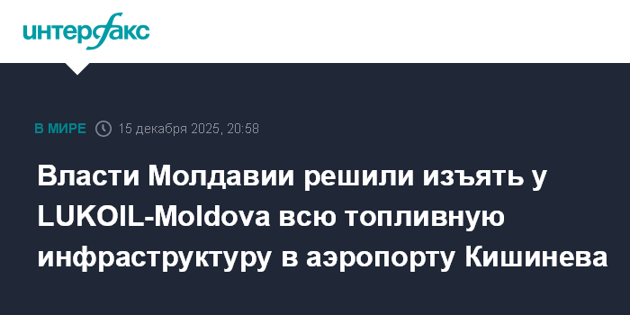 Москва. 15 декабря. INTERFAX.RU - Правительство Молдавии обязало ООО "ЛУКОЙЛ-Молдова" (LUKOIL-Moldova S.R.L.) вернуть международному аэропорту Кишинева всю аэропортовую топливную инфраструктуру, сообщил премьер-министр республики Александр Мунтяну в понедельник.