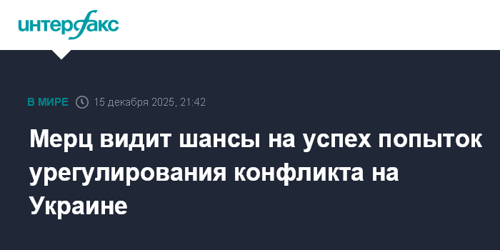 Москва. 15 декабря. INTERFAX.RU - Текущие переговоры между Вашингтоном и Киевом могут привести к завершению украинского конфликта, заявил канцлер Германии Фридрих Мерц в ходе совместной пресс-конференции с президентом Украины Владимиром Зеленским в понедельник