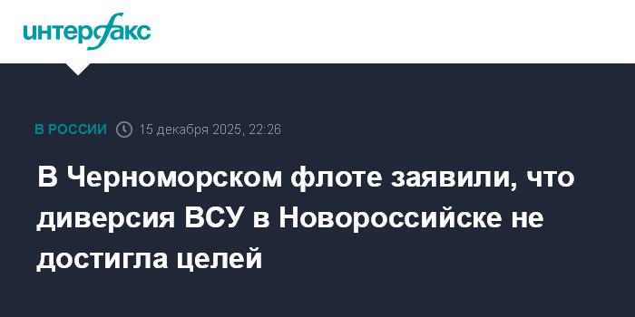 Москва. 15 декабря. INTERFAX.RU - Российские военные заявили, что Украина предприняла безуспешную попытку атаковать Новороссийскую военно-морскую базу при помощи морского дрона, все корабли и подводные лодки целы.