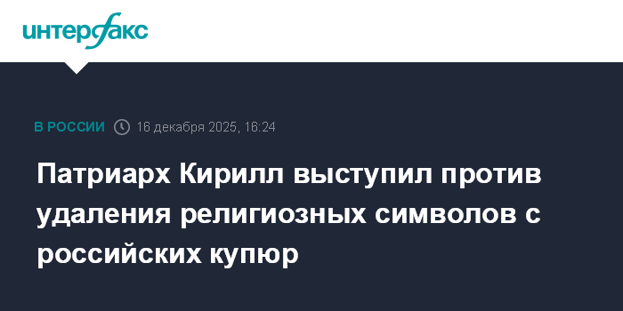 Москва. 16 декабря. INTERFAX.RU - Патриарх Московский и всея Руси Кирилл выступил против удаления православных символов с денежных знаков России.