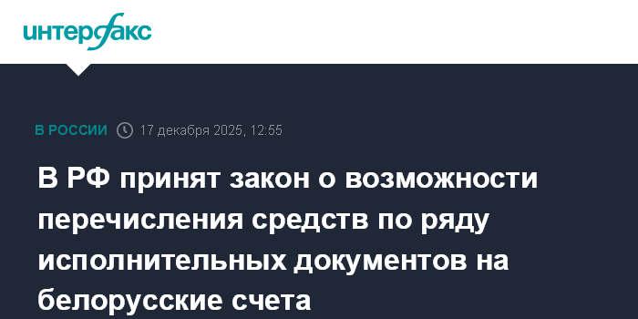 В РФ принят закон о возможности перечисления средств по ряду исполнительных документов на белорусские счета