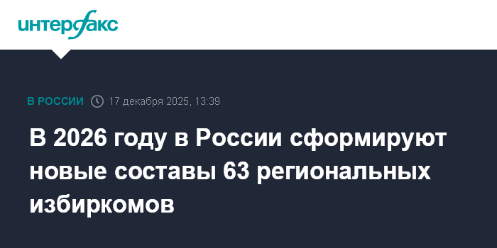 Москва. 17 декабря. INTERFAX.RU - В России в 2026 году будут сформированы новые составы 63 региональных избиркомов и 729 территориальных избиркомов в связи с истечением полномочий действующих составов комиссий, сообщили в Центризбиркоме России.