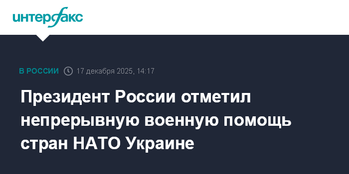 Президент России отметил непрерывную военную помощь стран НАТО Украине