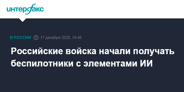 Москва. 17 декабря. INTERFAX.RU - В 2025 году в российские войска начали поступать беспилотные системы с элементами искусственного интеллекта, в 2026 году их поставки кратно возрастут, заявил на коллегии Минобороны глава ведомства Андрей Белоусов.