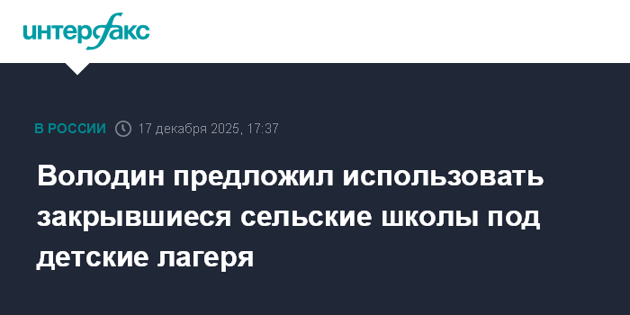 Москва. 17 декабря. INTERFAX.RU - Председатель Госдумы Вячеслав Володин предложил изучить возможность использования под детские лагеря существующей инфраструктуры в селах, где ранее располагались образовательные учреждения.