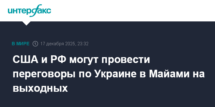 "Ожидается, что представители США и РФ на этих выходных встретятся в Майами в рамках попыток администрации (президента США Дональда - ИФ) Трампа завершить конфликт между Киевом и Москвой", - говорится в статье.