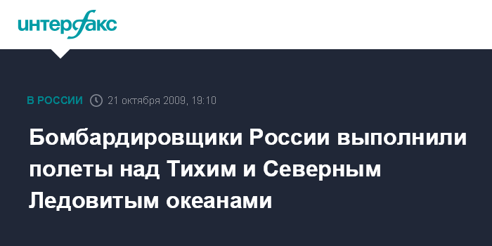 Москва.21 октября. INTERFAX.RU - Два стратегических бомбардировщика Ту-160 из состава дальней авиации ВВС РФ 20 октября выполнили многочасовой полет в район Тихого океана, сообщает управление пресс-службы и информации Минобороны РФ.
