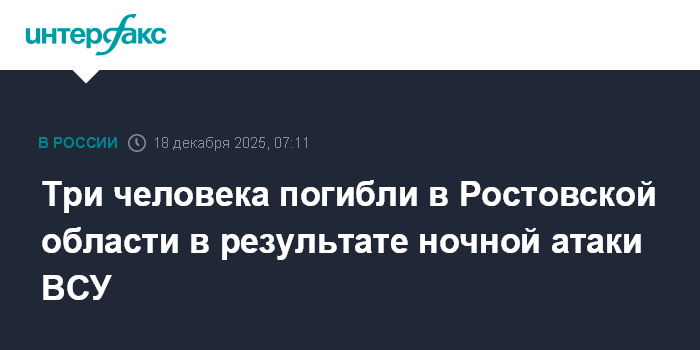 Три человека погибли в Ростовской области в результате ночной атаки ВСУ