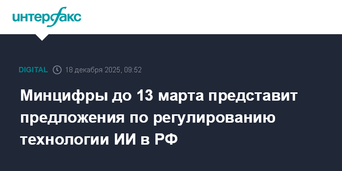 "По итогам совещания вице-премьер поручил организациям и заинтересованным участникам совещания направить в Минцифры России предложения по регулированию ИИ до 20 января. Представленные наработки будут проанализированы Минцифры России и Аналитическим центром при правительстве до конца февраля. По итогам оценки Минцифры представит в правительство предложения по регулированию технологии в срок до 13 марта 2026 года", - сообщили в аппарате.