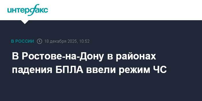 Москва. 18 декабря. INTERFAX.RU - В Ростове-на-Дону ввели режим ЧС в границах районов, которые получили ущерб после ночной атаки БПЛА, сообщил в Telegram глава города Александр Скрябин.
