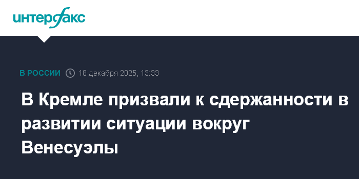 Москва. 18 декабря. INTERFAX.RU - Россия призывает все страны региона к сдержанности, чтобы избежать непредсказуемого развития ситуации в Венесуэле, заявил пресс-секретарь президента РФ Дмитрий Песков.