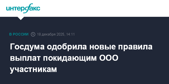 Госдума одобрила новые правила выплат покидающим ООО участникам