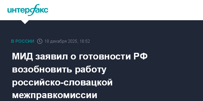 МИД заявил о готовности РФ возобновить работу российско-словацкой межправкомиссии